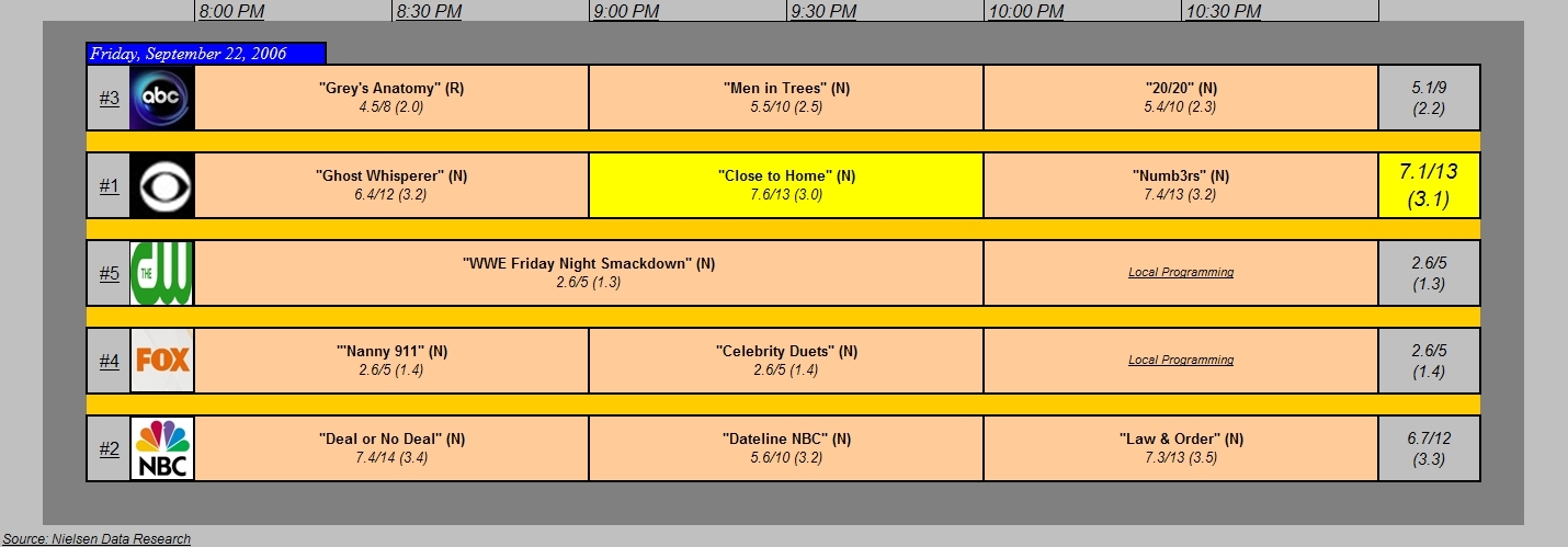 Broadcast TV Ratings for Friday, September 22, 2006 September 23, 2006 9:43 pm