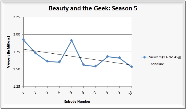 - 8:00 p.m.: The season five finale of Beauty and the Geek (1.1/2 HH rating/share, 1.53M viewers, 0.7/2 A18-49 rating/share).