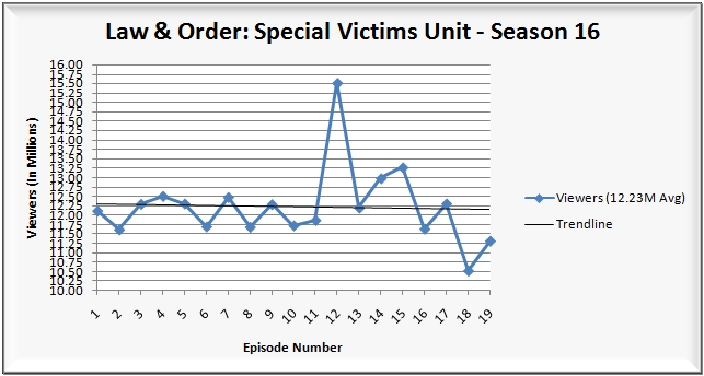 - 10:00 p.m.: The season nine finale of Law & Order: Special Victims Unit (7.6/13 HH rating/share, 11.32M viewers, 3.8/10 A18-49 rating/share).