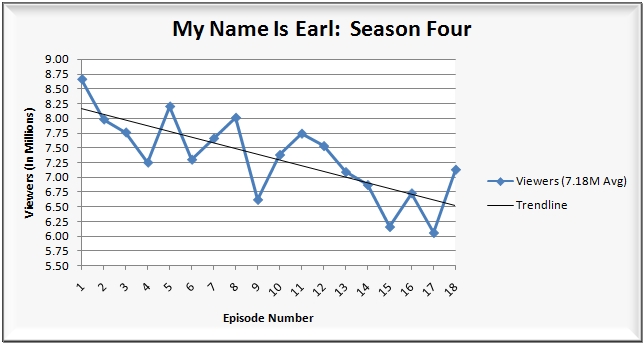 • 8:00 p.m.: The fourth season finale of My Name Is Earl (4.6/8 HH rating/share, 7.13M viewers, 3.0/9 A18-49 rating/share).