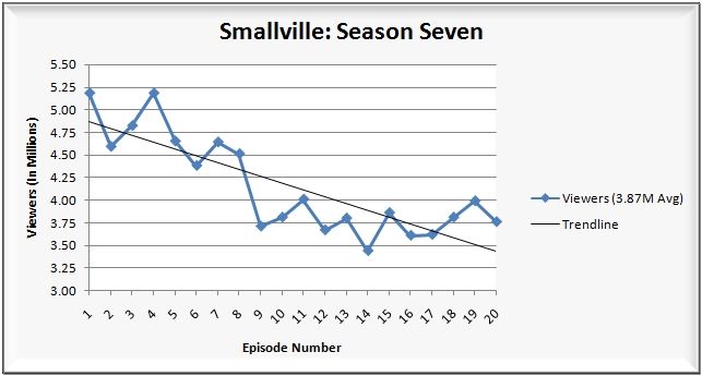 • 8:00 p.m.: The seventh season finale of Smallville (2.4/4 HH rating/share, 3.76M viewers, 1.7/5 A18-49 rating/share).