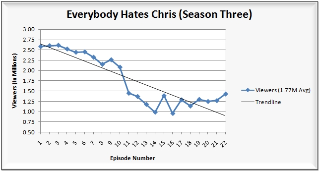 • 8:00 p.m.: The third season finale of Everybody Hates Chris (1.0/2 HH rating/share, 1.43M viewers, 0.5/2 A18-49 rating/share).