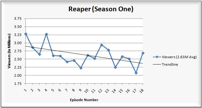 And lastly, The CW aired the season one finale of Reaper, which posted slight gains from the week prior.
