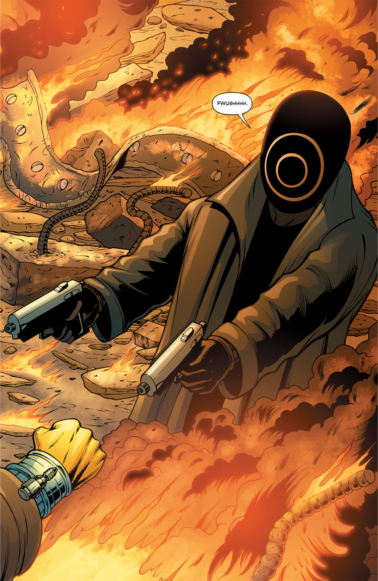 Like the film they tie-in to, IDW’s Terminator comics will push the timeline of the franchise past Judgment Day and into all new territory, allowing for stories and visuals previously only hinted at on film. The series will take the core concept of the Terminator films and give them a more global scope showing not just John Connor, but other humans who are either trying to survive or are actively part of the resistance. Writer Dara Naraghi says he was interested in exploring new themes—not just the action of a monumental battles, but also the game of basic survival the characters find themselves facing in such a war torn and desolate future.