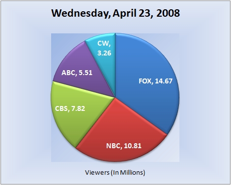 Broadcast TV Ratings for Wednesday, April 23, 2008 April 24, 2008 4:52 pm