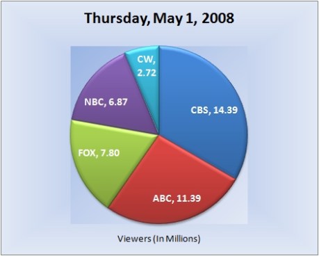 Broadcast TV Ratings for Thursday, May 1, 2008 May 2, 2008 1:59 pm