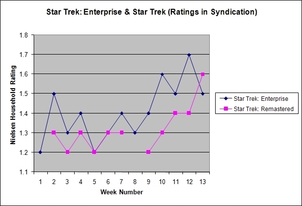 The third season is currently averaging a 1.5 household rating, down 25% from the 2.0 it averaged during season 2 and down 37.5% from the 2.4 it averaged during the series’ first season. The four-hour two part mini series back in December of 2003 averaged a 3.5 household rating.