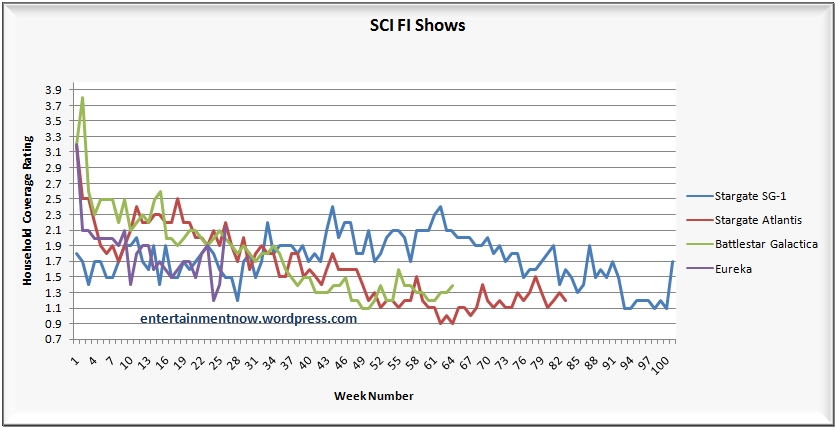 UPDATED ON AUGUST 22ND AT 4:00PM: Because some wondered how the other SCI FI shows have fared, I’ve gone ahead and posted a chart detailing the ratings of Stargate SG-1, Battlestar Galactica and Eureka as well as Stargate Atlantis. Check it out by clicking this link.