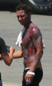 JustJared has gotten their hands a new set of photos of Shia LaBeouf on the set of Transformers: Revenge of the Fallen. The photos were taken on Friday and the actor is sporting a ton of fake blood and scars on a good deal of his body. This is likely how LaBeouf’s real life injury will be written into the script. Click the image on the right hand side to view all the pictures from JustJared.